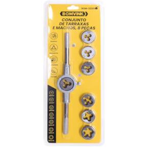 Produto: Jogo de tarraxa M3 a M12 com 8 peças - BOM-3230 Marca: Bomvink Descrição: O Jogo de tarraxa M3 a M12 com 8 peças BOM-3230 da Bomvink é sua solução definitiva para rosqueamento manual com precisão e eficiência. Ideal para profissionais da mecânica, metalurgia e hobistas exigentes, este kit oferece a robustez e a precisão que você necessita para seus projetos. O kit BOM-3230 foi cuidadosamente desenvolvido para oferecer máxima funcionalidade. Cada componente é fabricado com materiais de alta qualidade, garantindo durabilidade e resistência ao desgaste. Além disso, o design ergonômico proporciona conforto e facilidade no manuseio, permitindo que você realize trabalhos prolongados sem fadiga. Características • Versatilidade: Compatível com parafusos de M3 a M12, cobrindo as necessidades de diversos projetos. • Construção de Qualidade: Fabricado com aço de alta resistência para garantir uma vida útil prolongada. • Fácil Manuseio: Design ergonomicamente planejado para uma operação suave, reduzindo o esforço físico. • Kit Completo: Contém 8 peças cuidadosamente selecionadas para compor um conjunto abrangente e funcional. Invista no Jogo de Tarraxa BOM-3230 da Bomvink e experimente um trabalho mais limpo, rápido e eficiente. Adequado tanto para tarefas cotidianas quanto para operações especializadas, este conjunto é uma adição valiosa para sua caixa de ferramentas. especificações: Quantidade: 8 peças. Marca: Não Informado