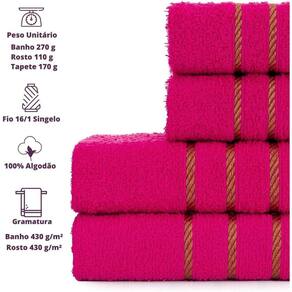 As Toalhas Montreal são confeccionadas com 100% algodão, tendo alta absorção de água desde a primeira vez de uso. São indicadas para uso no Dia a Dia, Pousada, Estética, Praia, Spas, Hoteis e Moteis. Feito com fio 16/1 singelo um dos melhores fios para produção de toalhas tornando-as mais macias e com alta durabilidade nas lavagens industriais.O tingimento é reativo deixando a Toalha Montreal com cores modernas e vivas, por ser reativo não tem o risco de soltar tinta. Essa toalha contém a barra decorada em dourado para dar um toque de modernidade e luxo ao seu Ambiente.A Toalha Montreal é desenvolvida com os melhores fios para dar macies a seu corpo, tingidas em cores fortes e alegres para deixar seu ambiente mais aconchegante e agradável. Pode comprar a sua toalha tranquilamente, temos a certeza que você vai gostar, será um grande prazer lhe atender!Ideal para pessoas que buscam qualidade e resistência, com toalha macia e com ótima absorção. Compre este Kit Montreal de presente e surpreenda quem você ama!