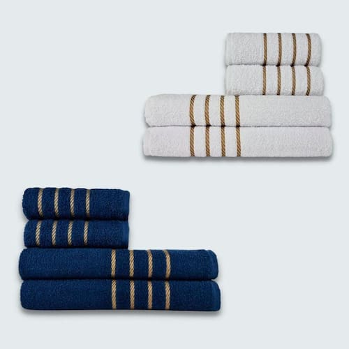 Jogo De Toalha 8 Pe?a Cole??o Montreal 100% Algod?o Branco+azul