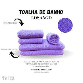 As Toalhas Briza são incríveis, perfeitas e super macias. Elas são 100% Algodão, com alta hidrofilidade, secando do começo ao fim, e com um desenho agradável em toda a toalha, não tendo barras com fios sintéticos, que não secam e podem causar alergias. Nossas toalhas são super macias, proporcionando aquela suave e agradável sensação de conforto ao tocar a sua pele. Se você deseja toalhas de altíssima qualidade, e quer experimentar todo esse conforto, as Toalhas Briza é a sua melhor opção.A alta qualidade dos nossos produtos é o resultado do compromisso assumido há quase 50 anos pela Ortofen, de produzir a melhor linha de roupões e toalhas, por um grupo determinado a entregar estilo e conforto a clientes de todo o Brasil. A marca Briza pertence ao Grupo Ortofen.No Kit Contém:- 2 Toalhas de Banho- 2 Toalhas de Rosto- 1 Toalha de PisoTAMANHO:- Banhão 80cm x 150cm - Rosto: 50cm x 80cm- Piso: 50cm x 80cm Ficha Técnica:- Gramatura: 370g/m;- Material: 100% Algodão;- Peso Líquido: 1.350 kg;- Dimensão Embalagem: 25cm x 30cm x 40cm;- Maciez; Instruções de Uso e Conservação:- Temperatura máxima de lavagem 30C Processo normal ;- Não alvejar Não branquear ;- Não secar em tambor;- Temperatura máxima da base do ferro a 110C vapor pode causar danos irreversíveis ;- Não limpar a seco;- Secagem em Varal;- Limpeza a úmido profissional Processo Normal ;- Lavar sempre antes de usar;- Lavar separadamente das peças coloridas . Garantia: 7 dias Atenção: Devido as toalhas serem 100% algodão, ou seja fibras naturais, o produto poderá sofrer variação nas tonalidades de um lote para o outro.