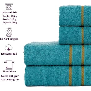 Composição - 2 Toalhas de Banho + 2 Toalhas de RostoGramatura - 330 G/m Peso Toalha de Banho - 290 a 300 Gramas Peso Toalha de Rosto - 110 a 120 GramassTamanho Toalha de Banho - 70x130 cm Tamanho Toalha de Rosto - 45x70 cm Fio - 16/1
