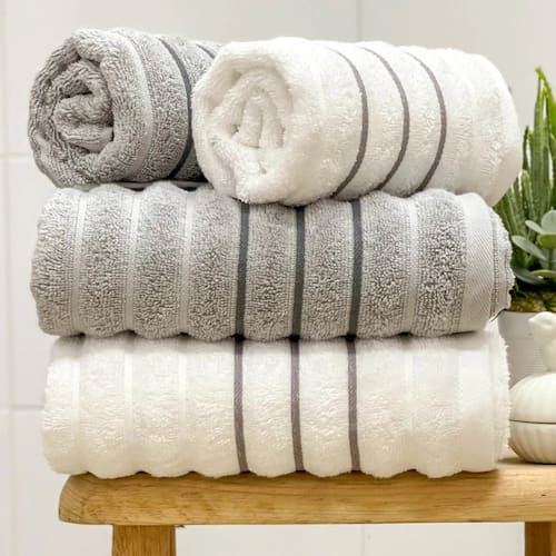 Fabricadas em 100% algodão e com gramatura de 450g/m², as toalhas oferecem maciez excepcional e excelente absorção. O design moderno em ondas proporciona um toque estiloso, tornando-as ideais para relaxar na areia ou à beira da piscina.