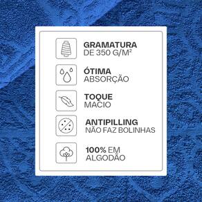100% algodão de alta qualidade Gramatura de 350g/m² Ótima absorção Secagem rápida