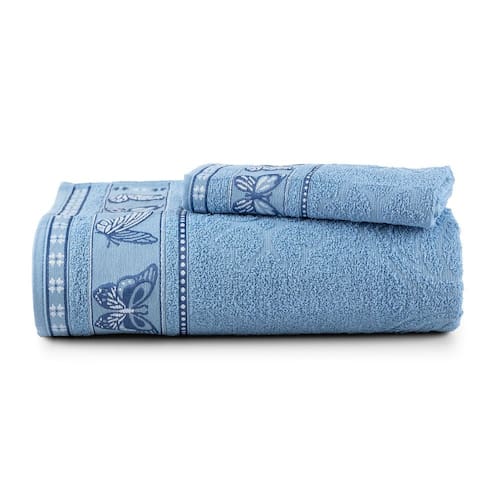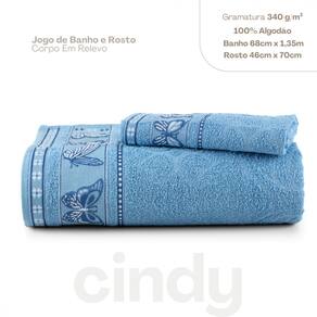 JOGO DE TOALHAS CINDYA Toalha Cindy tem um toque é macio como nuvem, mas o que realmente encanta são os delicados desenhos de borboletas, que trazem uma leveza visual ao seu banheiro. Não é apenas sobre funcionalidade; é sobre estilo e personalidade na hora mais relaxante do seu dia.Quantidade de Peças e Medidas Aproximadas:1: Toalha de Banho 1,35m x 68cm1: Toalha de Rosto 46cm x 70cmMaterial e Composição:100% Algodão e Gramatura 340g/m²Informações Específicas:HipoalergênicoLavar antes de usar pela primeira vez para retirada de resíduos de fabricaçãoNão utilizar amaciantes nas primeiras lavadasNão usar alvejantesCores escuras devem ser lavadas separadamenteEvite lavar juntamente com tecidos abrasivos para evitar o surgimento de bolinhasInformações Gerais:- Material visual ilustrativo;- Pode haver alterações na tonalidade da cor da imagem do produto, devido a diferença de telas de visualização;- Fique atento(a) à descrição do produto, podendo não apresentar todas as peças que constam no material visual;- Garantia contra defeito de fábrica.