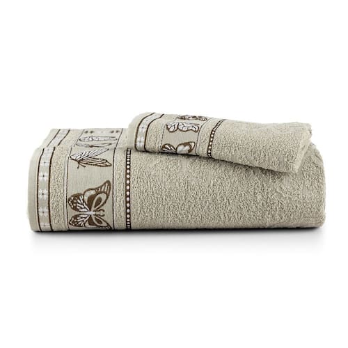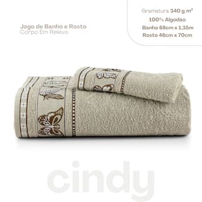 JOGO DE TOALHAS CINDYA Toalha Cindy tem um toque é macio como nuvem, mas o que realmente encanta são os delicados desenhos de borboletas, que trazem uma leveza visual ao seu banheiro. Não é apenas sobre funcionalidade; é sobre estilo e personalidade na hora mais relaxante do seu dia.Quantidade de Peças e Medidas Aproximadas:1: Toalha de Banho 1,35m x 68cm1: Toalha de Rosto 46cm x 70cmMaterial e Composição:100% Algodão e Gramatura 340g/m²Informações Específicas:HipoalergênicoLavar antes de usar pela primeira vez para retirada de resíduos de fabricaçãoNão utilizar amaciantes nas primeiras lavadasNão usar alvejantesCores escuras devem ser lavadas separadamenteEvite lavar juntamente com tecidos abrasivos para evitar o surgimento de bolinhasInformações Gerais:- Material visual ilustrativo;- Pode haver alterações na tonalidade da cor da imagem do produto, devido a diferença de telas de visualização;- Fique atento(a) à descrição do produto, podendo não apresentar todas as peças que constam no material visual;- Garantia contra defeito de fábrica.