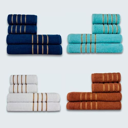 Jogo De Toalhas 16 P? Cole??o Montreal 100% Algod?o Az+vd+br+mr