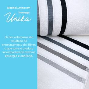 Essa toalha clássica, a queridinha do Brasil, destaca-se por seu design moderno, com listras formando um contraste muito elegante na barra decorativa que resulta em um toque sofisticado. Além da beleza, a Toalha Lumina incorpora tecnologia de ponta.