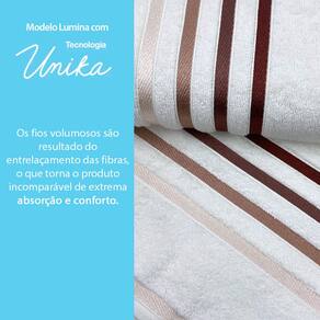 Essa toalha clássica, a queridinha do Brasil, destaca-se por seu design moderno, com listras formando um contraste muito elegante na barra decorativa que resulta em um toque sofisticado. Além da beleza, a Toalha Lumina incorpora tecnologia de ponta.