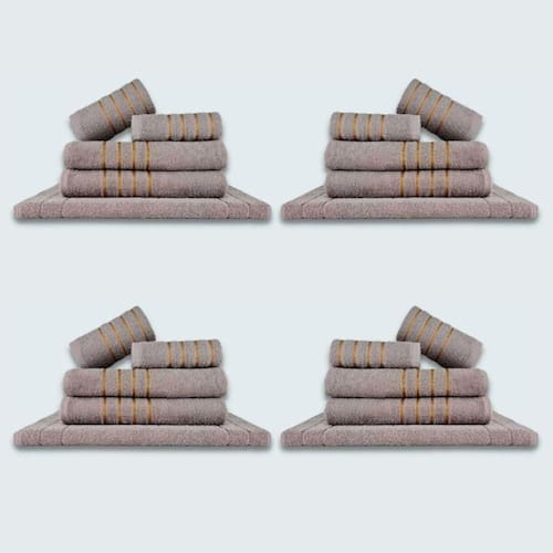 Composição - 8 Toalhas de Banho + 8 Toalhas de Rosto + 4 Tapetes AtiderrapanteGramatura - 330 G/m Peso Toalha de Banho - 290 a 300 Gramas Peso Toalha de Rosto - 110 a 120 GramassPeso Aproximado da Toalha de Piso 170 a 180 GramasTamanho da Toalha de Piso 45x70 cmTamanho Toalha de Banho - 70x130 cm Tamanho Toalha de Rosto - 45x70 cm Fio - 16/1Qualidade do Jogo de Toalhas Montreal