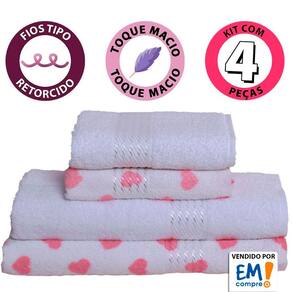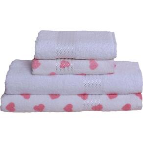 Jogo de toalhas com toque macio e excelente absorção. Com estampa de corações, deixando o seu ambiente romântico e delicado. Mais conforto e qualidade para o seu dia!