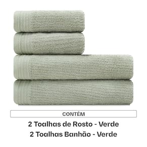 Este kit contêm 4 peças: 02 Toalhas de Rosto (48cm x 80cm) 02 Toalhas de Banhão (86cm x 150cm)