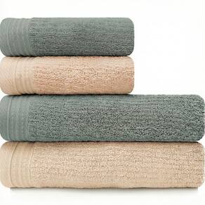 Este kit contêm 4 peças: 02 Toalhas de Rosto (48cm x 80cm) 02 Toalhas de Banhão (86cm x 150cm)