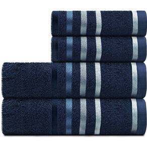 Este kit contém: 02 Toalhas Rosto (48cm x 80cm) 02 Toalhas Banhão (86cm x 150cm)