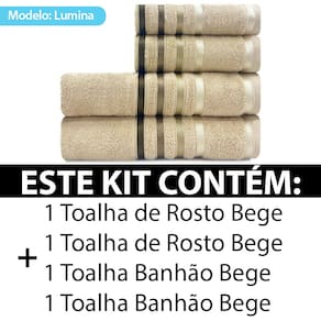 Este kit contém: 02 Toalhas Rosto (48cm x 80cm) 02 Toalhas Banhão (86cm x 150cm)