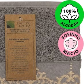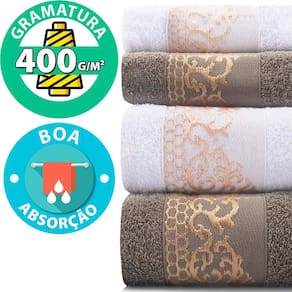 Este jogo contém 4 peças: - 02 Toalhas Rosto (50cm x 80cm) - 02 Toalhas Banhão (75cm x 1,50m)