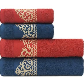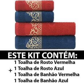 Este jogo contém 4 peças: - 02 Toalhas Rosto (50cm x 80cm) - 02 Toalhas Banhão (75cm x 1,50m)