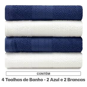 Jogo de Toalhas 4 Peças Banho 100% Algodão Empire Karsten Emcompre - Azul Marinho