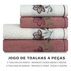 Jogo de Toalhas 4 Peças Banho e Rosto 100% Algodão Karsten Encanto - Rosê