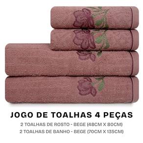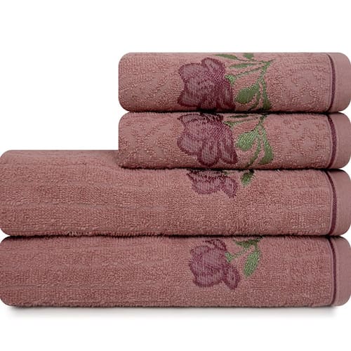 Jogo de Toalhas 4 Peças Banho e Rosto 100% Algodão Karsten Encanto - Rosa