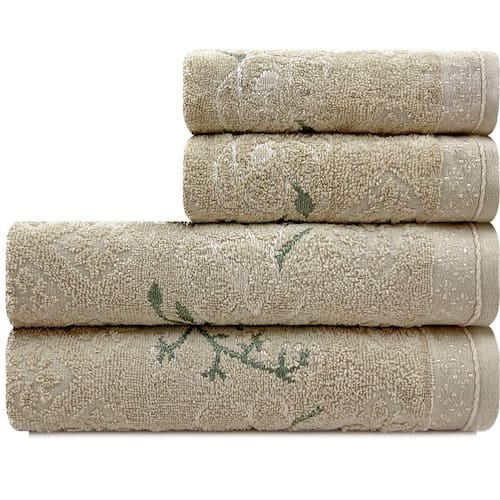 Jogo De Toalhas 4 Peças - Banho e Rosto Algodão Antipiling Yuna Karsten - Emcompre - Creme