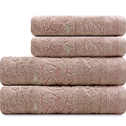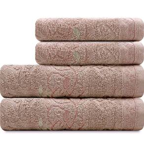 Jogo De Toalhas 4 Peças Banho Rosto Algodão Yuna Karsten - Bege Claro