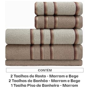 02 Toalhas Rosto (45cm x 68cm) 02 Toalhas Banhão (78cm x 1,50m) 01 Toalha Piso de Banheiro (45cm x 68cm)