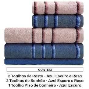 Jogo de Toalhas 5 Peças Banhão e Rosto Algodão Appel Classic - Azul Escuro