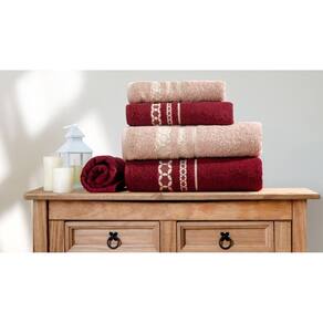 Contém: 02 Toalhas de banho 70cm X 1,40cm 02 Toalhas de Rosto 50cm X 75cm 01 Toalha de piso 50cm X 75cm