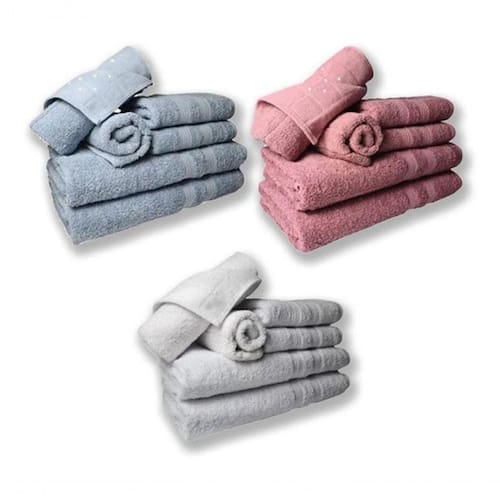 Jogo De Toalhas 6 Banhos 6 Rostos 6 Pisos Grossa Az+br+re - Única