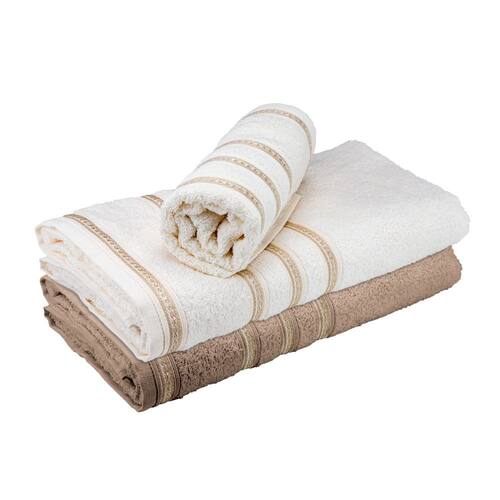 O Jogo de Toalhas Atlântica Bem Estar é perfeito para completar o seu banheiro. Composto por 3 peças, sendo 1 toalha de rosto (50cm x 80cm) e 2 toalhas banhão (80cm x 1,50m), as toalhas possuem um toque macio e confortável, além de ótima absorção que vai proporcionar uma sensação única de bem-estar. Seu design é clássico, e contém bordado com brilho para deixar o seu banheiro ainda mais bonito.Dicas de PreservaçãoSempre siga as instruções de lavagem e conservação dispostas na etiqueta ou embalagem do produto.Amor de CasaTodo mundo ama um banheiro arrumado, e as toalhas de banho e rosto além de essenciais, são peças chaves para trazer personalidade na decoração do banheiro. Mas é claro que, além da estética, as toalhas são indispensáveis para a manter a funcionalidade no banheiro e bons hábitos de higiene que contribuem para o nosso bem-estar.