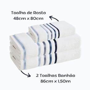 01 Toalha de Rosto, tamanho 48cm x 80cm Cor: Branca 02 Toalhas de Banho Grande, tamanho 150cm x 86cm Cor: Branca Gramatura 500g/m²