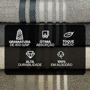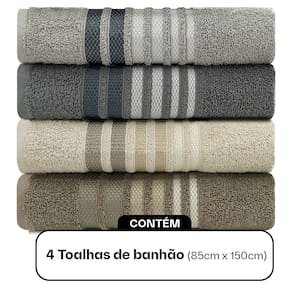 Este jogo contém 4 peças: 04 Toalhas Banhão (85cm x 150cm)