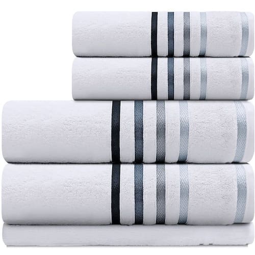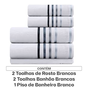 Este jogo contém: 01 Toalha Piso (45cm x 65cm) 02 Toalhas Rosto (48cm x 80cm) 02 Toalhas Banho (86cm x 150cm)