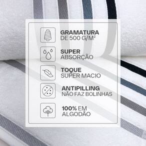 Rosto/Banho Características: - Alta maciez e conforto - Barras coloridas e lisas - Corpo trabalhado e liso - Fio Penteado - Pré-Encolhida ( Tecnologia para Minimizar a diminuição quando lavado) - Antipilling (Não Junta Bolinhas) - Ótima absorção - Toque macio