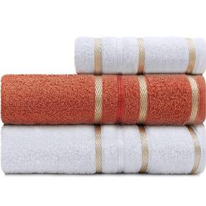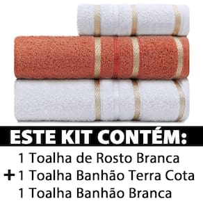 Este jogo contém 3 peças: - 01 Toalhas Rosto (50cm x 80m) - 02 Toalhas Banhão (80cm x 1,50m)