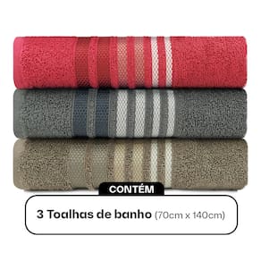 Este jogo contém 3 peças: 03 Toalhas de Banho (70cm x 140cm)