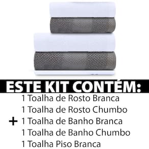 Este kit contém: - 01 Toalha Piso (45cm x 65cm) - 02 Toalhas Rosto (48cm x 70cm) - 02 Toalhas Banho (70cm x 135cm)