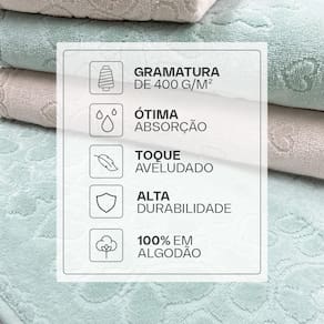 Produzida em 100% algodão de fios penteados, essas toalhas Döhler de qualidade premium possuem um toque aveludado super aconchegante. Já a gramatura de 400 g/m2 oferece alta absorção e secagem eficiente para um pós-banho mais relaxante.