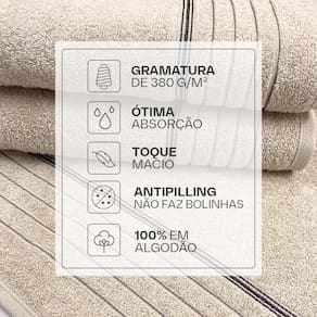 Características das toalhas: Gramatura: 380g Composição: 100% algodão, exceto na barra decorativa Tecnologia Softmax Acabamento Antipilling (tecido anti-bolinhas) Tecido pré-encolhido Toque macio e excelente absorção Modelo: Bressan Marca: Karsten