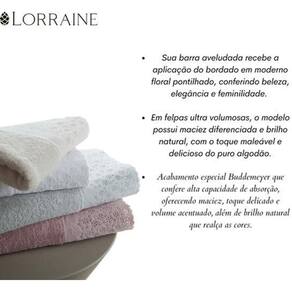Aplicação de renda em veludo na mesma cor da toalha Toalhas em 100% algodão fio penteado. Pré-lavadas e pré-encolhidas, conferindo durabilidade e alta capacidade de absorção Qualidade e design buddemeyer