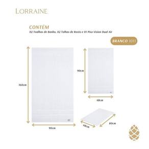Conteúdo da embalagem: Contém: 2 toalhas de banho 90x160cm + 2 toalhas de rosto 48x90cm + 1 toalha de piso 48x80cm.