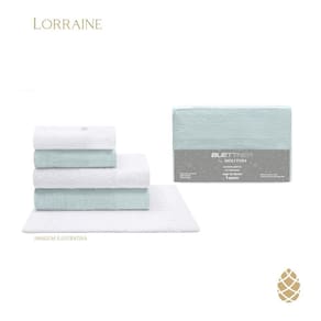 Jogo de toalhas buettner darling banho 5 pçs algodão egípcio Cor: branco/mineral Descrição: Encante-se pelo luxuoso jogo de toalhas nobre darling, confeccionada em algodão egípcio de alta qualidade, uma escolha que reflete qualidade, maciez e durabilidade incomparáveis, envolvendo você em uma suavidade incomparável. Mime-se com o conforto luxuoso e a estética impecável do jogo de toalhas darling buettner, transformando seus momentos de cuidado pessoal em um ritual de indulgência.