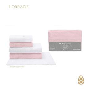 Jogo de toalhas buettner darling banho 5 pçs algodão egípcio Cor: branco/rosa pétala Descrição: Encante-se pelo luxuoso jogo de toalhas nobre darling, confeccionada em algodão egípcio de alta qualidade, uma escolha que reflete qualidade, maciez e durabilidade incomparáveis, envolvendo você em uma suavidade incomparável. Mime-se com o conforto luxuoso e a estética impecável do jogo de toalhas darling buettner, transformando seus momentos de cuidado pessoal em um ritual de indulgência.