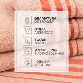 Alta absorção e toque macio 360 g/m² de gramatura 100% algodão (exceto na barra decorativa) Tecnologia Antipilling (não forma bolinhas)