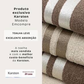 Toalhas de qualidade Karsten Pré-encolhidas e tratadas com a tecnologia Antipilling, elas são produzidas em fios de algodão de alta qualidade, o que evita a formação de bolinhas e preserva a qualidade do tecido mesmo após diversas lavagens.