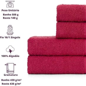 Conteúdo: Jogo com 4 peças - 2 Banho 2 RostoGramatura: 430 g/mPeso Aproximado da Toalha de Banho: 490 a 510 GramasPeso Aproximado da Toalha de Rosto: 160 a 180 GramasTamanho da Toalha de Banho: 80x150 cmTamanho da Toalha de Rosto: 45x80 cmColeção: Itália SoftFio: 16/1 SingeloMaterial: 100% Algodão