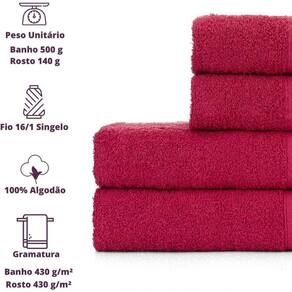 Jogo De Toalhas De Banho 4 Peças 100% Algodão Alta Absorção (2 Banho + 2 Rosto ) Padrão Hotel/pousada - Cereja