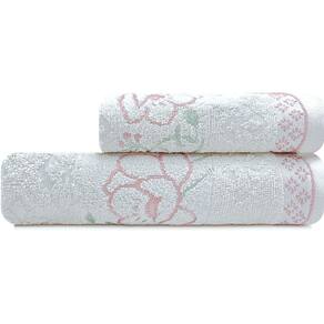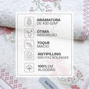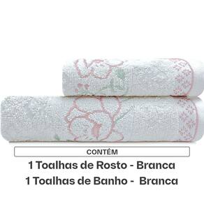 Este kit contém: 01 Toalhas de Banho (70cm x 135cm) 01 Toalhas de Rosto (50cm x 80cm). Características: 100% Algodão (exceto na barra decorativa) Gramatura: 430g/m² Pré-encolhida e com acabamento antipilling Toque macio e ótima absorção