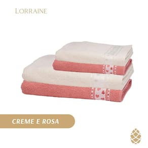 Jogo de toalhas dhler jacquard premium corações banho 4 pçs Cor: creme/rosa Jogo de banho 4 peças jacquard premium fj-6987 estampada corações