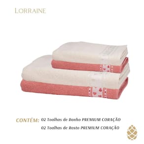 Jogo de toalhas dhler jacquard premium corações banho 4 pçs Cor: creme/rosa Jogo de banho 4 peças jacquard premium fj-6987 estampada corações